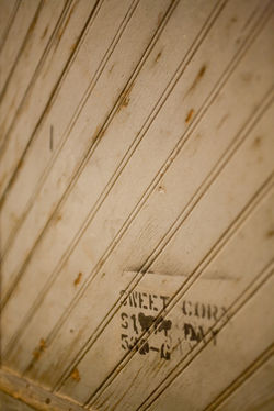 The reconfigured and customized kitchen space features new fixtures and fittings including a pull out faucet, farmhouse sink, French door double oven, and large new stainless gas range with red gadgets, and a large vent hood. The new large central island provides space for cooking and entertaining while also becoming a conversation piece and the "jewel of the space." The unique Mascarello granite offers a multi-colored burst of colors to pull in the French Country Farmhouse color palette of the surrounding walls and tile work. In addition, a new pantry and laundry reconfiguration allows the client more functionality, and storage space while also creating an element of visual interest on that wall. Both spaces share a historic antique Rocky Mountain Seed Company door from the 1800s that slides along a barn door track. A customized cabinet, designed to simulate iceboxes of a bygone era, was created to provide additional storage. The cabinet is fitted with vintage icebox hardware and Shaker oak doors.